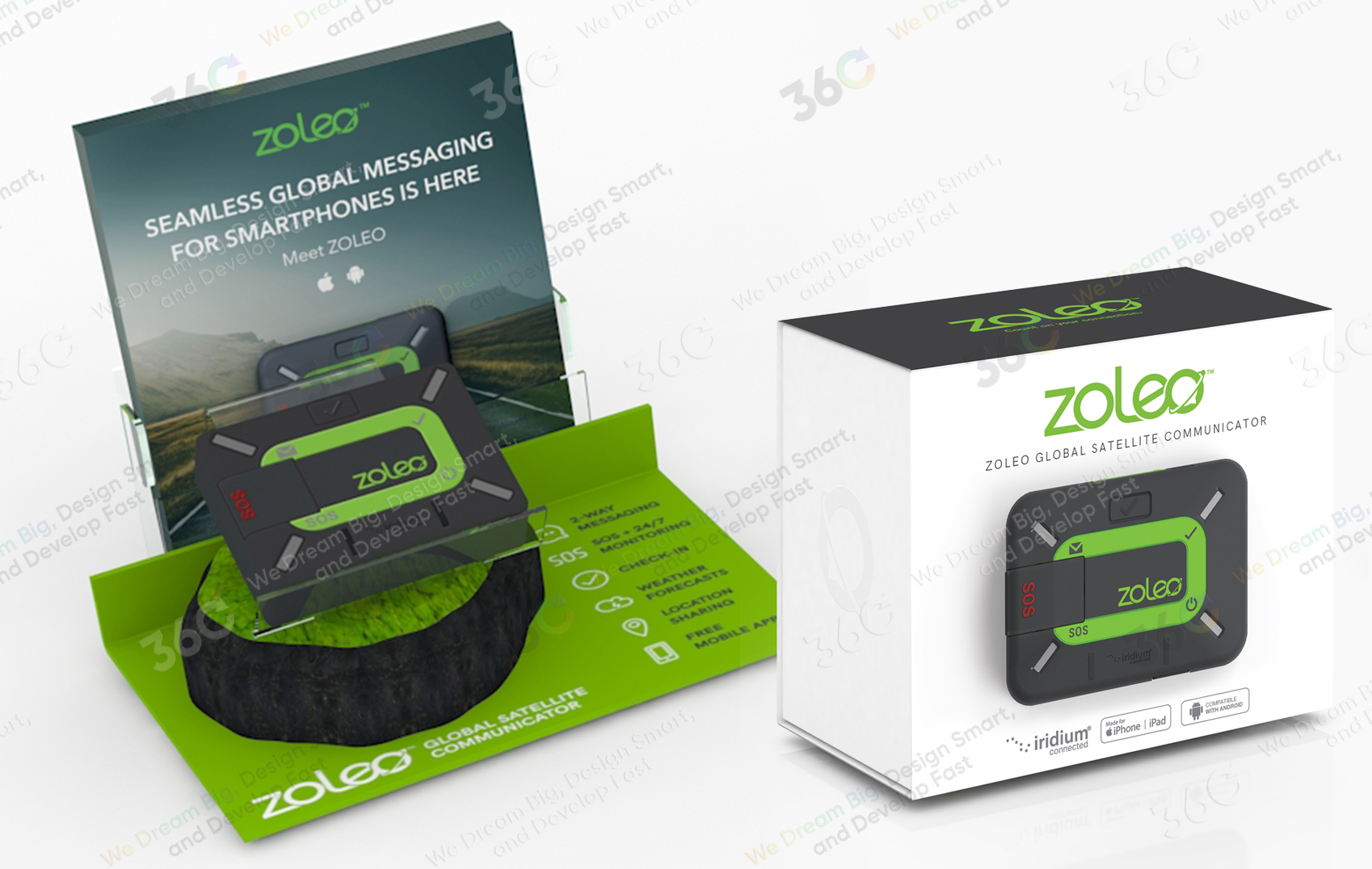 To support ZOLEO’s Satellite Communicator launch, we designed and developed several physical assets to be used in retail chains, at points of sale, and in specialized exhibitions. These included theme-specific branding design variants for the ZOLEO exhibition stand, a constructive counter display, over 20 different types of printed materials (sales sheet, one sheet, brochures, brochure inserts, corporate gifts), 2 key plots (winter and summer), and packaging design plus accompanying materials for the North American promo.
